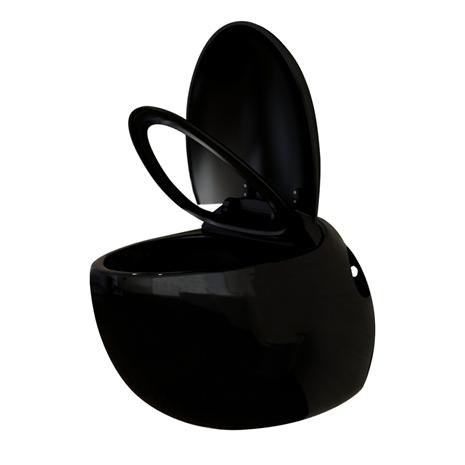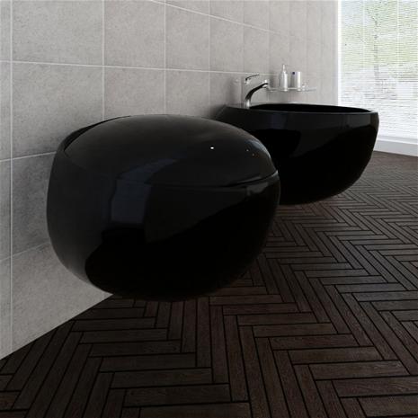 vidaXL Seinään Asennettava WC ja Bidee Sarja Musta Keraaminen