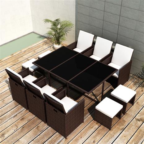 vidaXL Ruokailuryhmä 27-osainen Ulkotiloihin Ruskea Polyrottinki