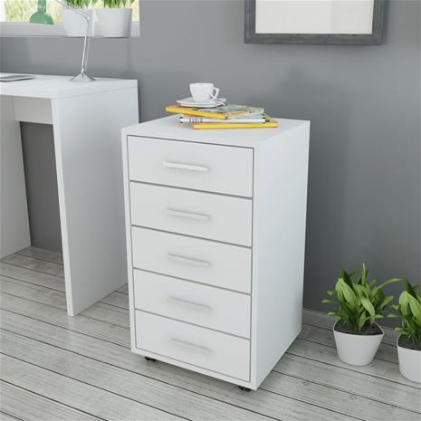 vidaXL Toimiston Laatikosto Rullapyörillä 5 Laatikkoa Valkoinen