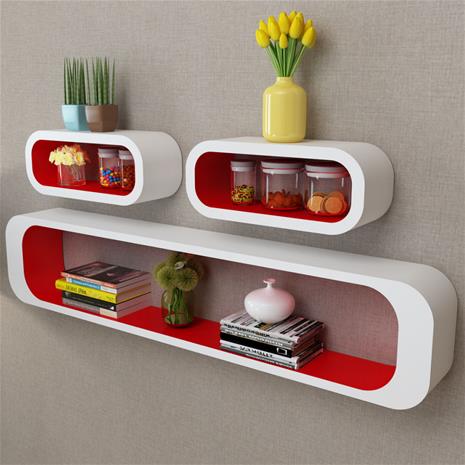vidaXL Valkoinen-punainen MDF Kuutio Seinähyllyt Kirja-/DVD-hylly hintaan 69 €