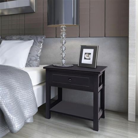 vidaXL Yöpöytä Puu Musta