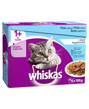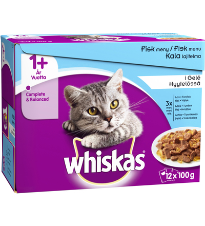 Whiskas 1+ 12x100 g kalalajitelma hyytelössä hintaan 3.7 €