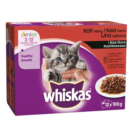 Whiskas Kissanruoka 12x100g Junior lihalaj kast hintaan 3.95 €