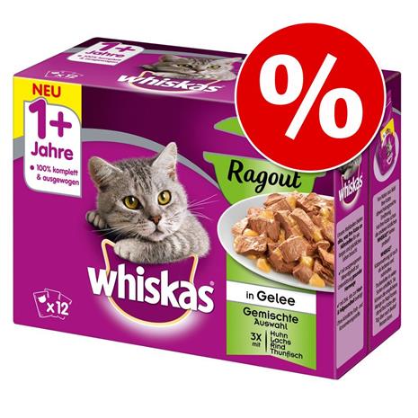 Whiskas Ragout -säästöpakkaus 48 x 85 g - kalavalikoima hyytelössä hintaan 14.49 €