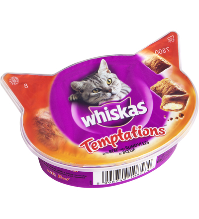 Whiskas Temptations 60 g härkää herkkupaloina hintaan 1 €